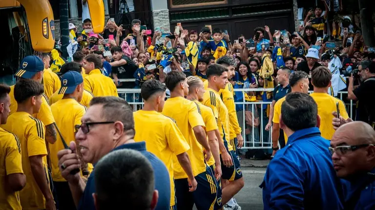 Boca llegó ayer tarde en medio de una marea de hinchas que lo esperaba. Esta noche a las 21.15 hs. enfrenta a Gimnasia de Chivilcoy a estadio lleno.