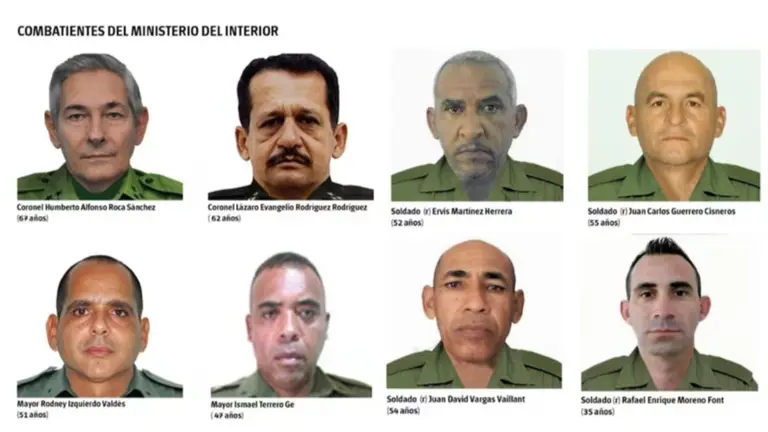 La lista de los fallecidos se hizo pública en la prensa estatal cubana. Este martes es el último de los dos días de duelo nacional decretados por el Ejecutivo tras confirmar el domingo sobre la muerte de los 32 militares en el país suramericano.