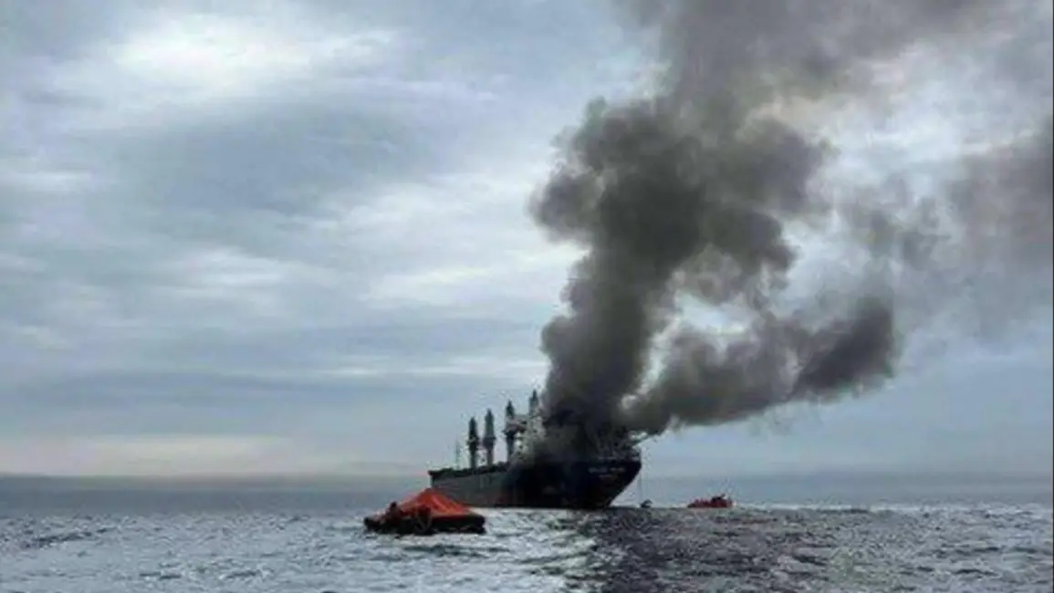 Un barco alcanzado en las últimas horas por proyectiles en el estrecho de Ormuz. Foto: EFE