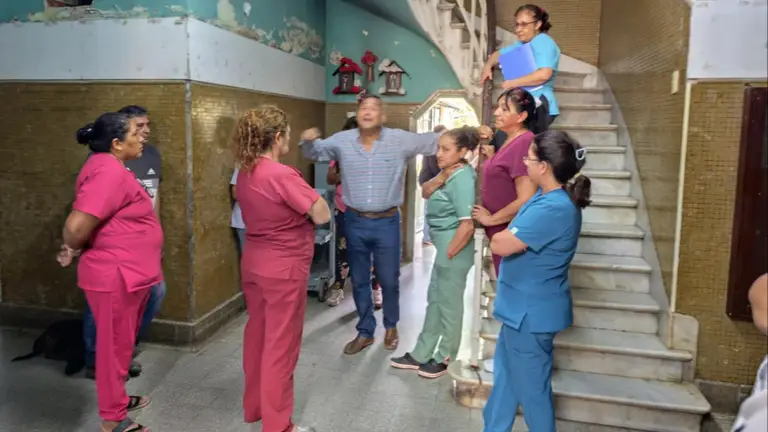 En cada sector visitado, sin el acompañamiento de la gerencia del hospital para que el personal se sienta libre de expresar sus preocupaciones, tuvo charlas y hasta discusiones con el personal, que forman parte de la planta de un nosocomio cuya estructura cuenta con 88 años de antigüedad. "Se trata de un hospital antiguo que tiene muchas fallas estructurales, soy consciente de eso, pero no tenemos plata. Hoy prefiero destinar los fondo para salvar una vida y no para cambiar un techo o una cañería, hemos sufrido un recorte criminal a nivel nacional, pero debemos mantener como sea nuestro sistema gratuito de salud y para eso necesito que todos me colaboren" manifestó.