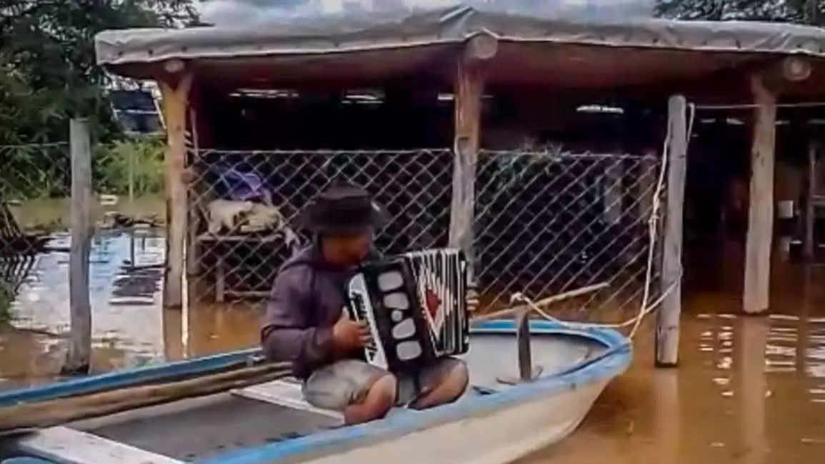 Las postales son insólitas en Rivadavia Banda Sur. El modo en que la gente se rinde ante la bravura del río, conmueve. En el paraje El Ciénego, a 15 kilómetros de La Unión, el popular músico Germán Alzogaray estuvo horas con su acordeón derramando penas por otro revés del río, sobre su lancha, frente a su rancho inundado. En otras lanchas, gente con cabras y perros intentando no perder lo poco que les dejó la corriente zaina del Bermejo. Ya no se trata de salvar la cama ni la heladera que tanta falta les hace ahí donde las temperaturas altas son extremas. Los animalitos y el acordeón. Los valores sobre lo imperante de la naturaleza.
