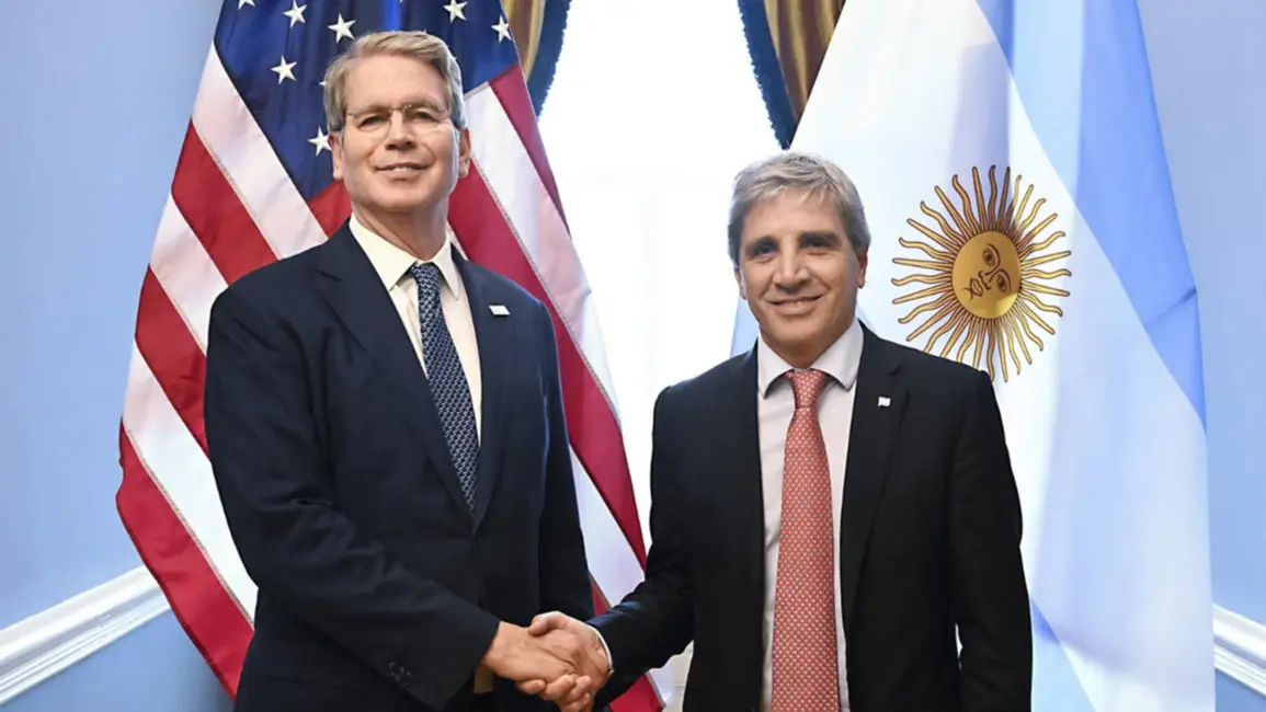 El secretario del Tesoro de EEUU, Scott Bessent y el ministro de Economía, Luis Caputo negociaron el auxilio financiero para la Argentina.