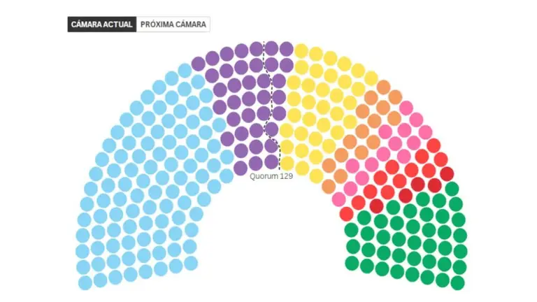 El gráfico del hemiciclo —que representa la próxima composición parlamentaria— refleja las orientaciones de cada bloque más allá de las alianzas electorales. Esto significa que, por ejemplo, los 10 diputados del PRO que ingresaron por la alianza con La Libertad Avanza aparecen en su propio bloque, al igual que los 3 radicales que lo hicieron por la misma coalición. Del mismo modo, los 3 legisladores que entraron por el PJ por fuera de Fuerza Patria no se contabilizan dentro de ese espacio, aunque se ubican dentro del bloque peronista.