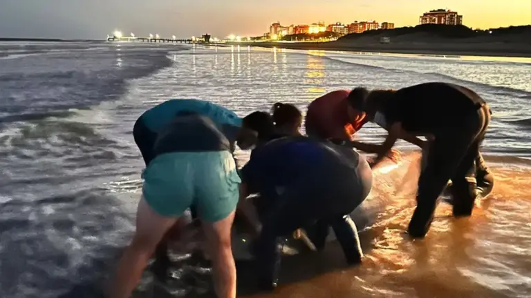 El aviso, que llegó a las 19:30 del martes, activó de inmediato a los técnicos y veterinarios de la Fundación Mundo Marino. El operativo, marcado por la baja visibilidad y la bravura del oleaje, intentó lo imposible: devolver a aguas profundas a un animal diseñado para vivir a miles de metros bajo el nivel del mar.
