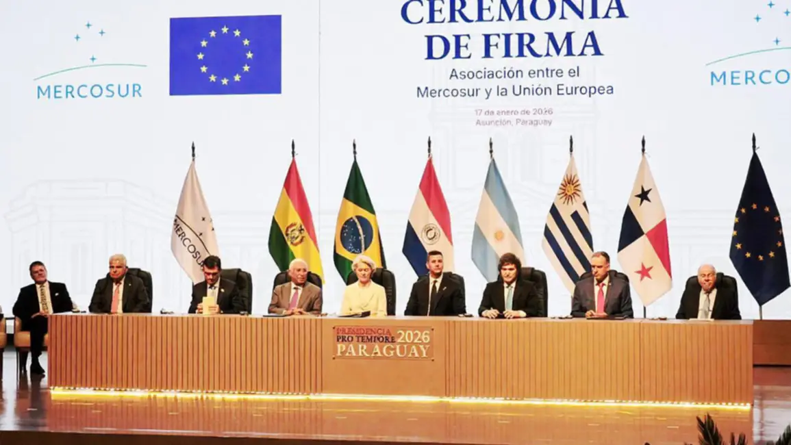 En un acontecimiento calificado como histórico para la geopolítica regional, el Mercosur y la Unión Europea (UE) formalizaron este sábado en Asunción la firma de su acuerdo de asociación comercial. Tras 26 años de negociaciones, marchas y contramarchas, los bloques sellaron la creación de un área de libre comercio que integrará a 720 millones de personas, convirtiéndose en la más grande del mundo por volumen de consumidores y potencial productivo.