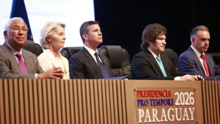 Una nueva escena de tensión diplomática quedó registrada este sábado en el Gran Teatro "José Asunción Flores" de Asunción. Durante el acto de cierre del acuerdo comercial entre el Mercosur y la Unión Europea, el presidente Javier Milei protagonizó un frío gesto al negarse a aplaudir cuando el mandatario paraguayo, Santiago Peña, destacó el liderazgo de Luiz Inácio Lula da Silva en la integración regional.