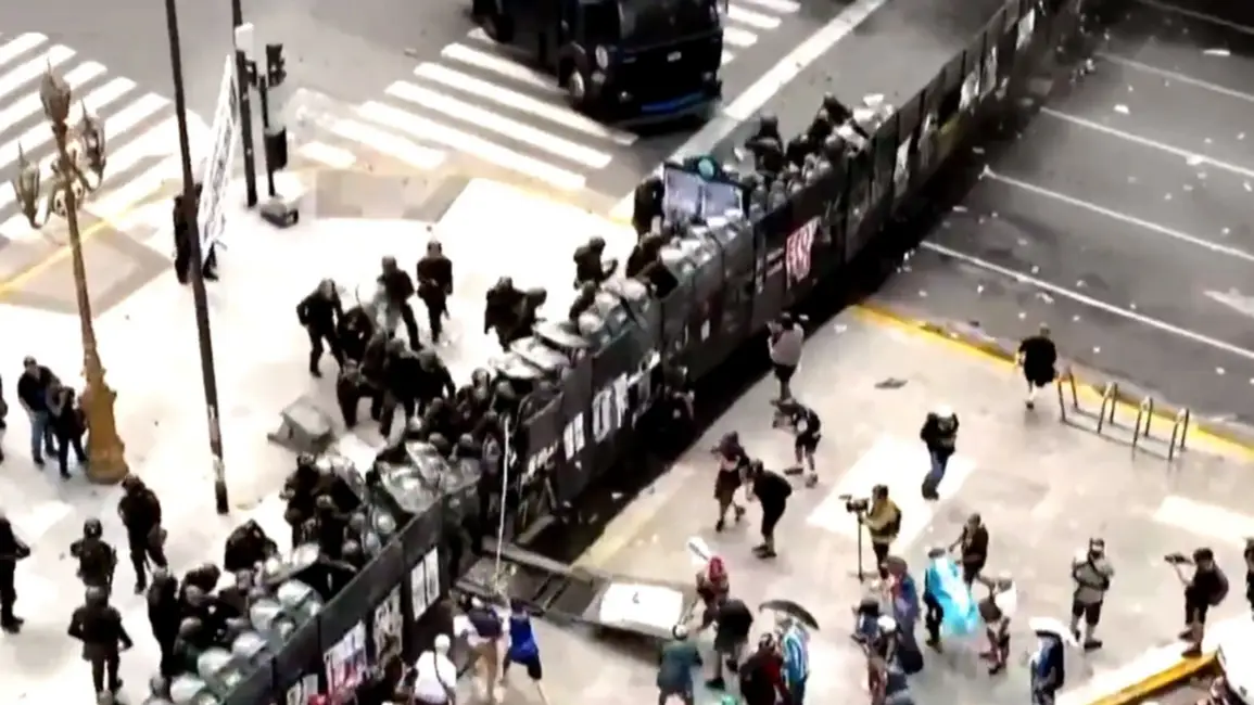El operativo de seguridad para la jornada es masivo, contando con 800 oficiales desplegados solo en el tercer anillo de seguridad del área del Congreso. Sin embargo, la calma se rompió cuando un sector de los manifestantes intentó avanzar sobre el perímetro restringido.
