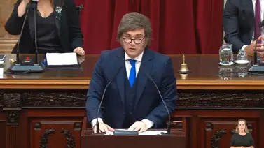 El presidente Javier Milei brinda este domingo su discurso ante la Asamblea Legislativa en el Congreso, en el marco de la apertura del período 144 de las sesiones ordinarias.