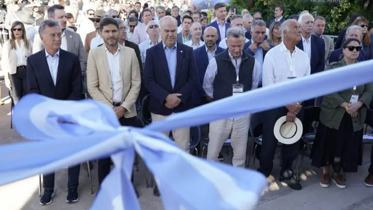 Mauricio Macri, Maximiliano Pullario y Sergio Iraeta, en la inauguración de la Expoagro 2026. NA