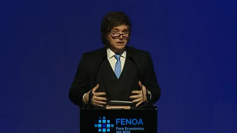 El presidente Javier Milei encabezó ayer el cierre del Foro Económico del NOA (Fenoa) en San Miguel de Tucumán, donde volvió a cuestionar con dureza a la gestión de Alberto Fernández y defendió el rumbo económico de su gobierno. La actividad se desarrolló bajo el lema "La hora de las provincias" y reunió a dirigentes políticos, empresarios y economistas con el objetivo de analizar estrategias para impulsar la competitividad y el crecimiento regional.