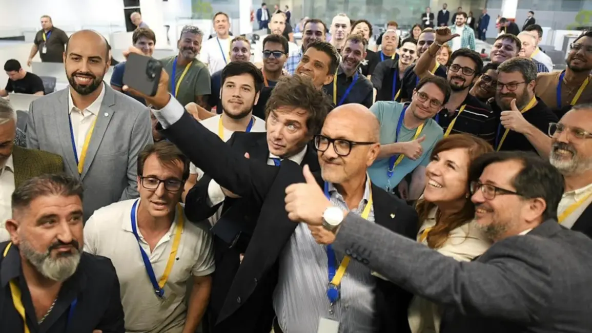 El Presidente Javier Milei, en su visita al Centro de Monitoreo de VISA Argentina. FOTO: Presidencia