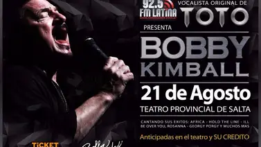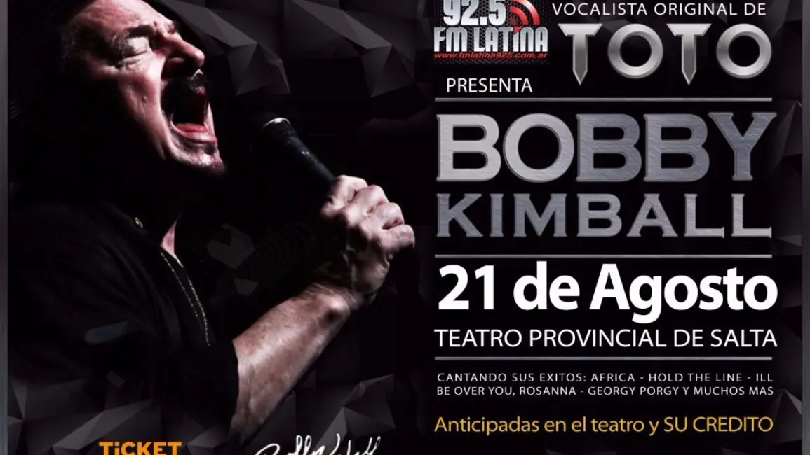 El recital de Bobby Kimball en Salta se realizara el lunes 21 de agosto en el Teatro Provincial de Salta. La venta de entradas se realiza en ese lugar. Se trata de un evento de interés pàra toda la familia.