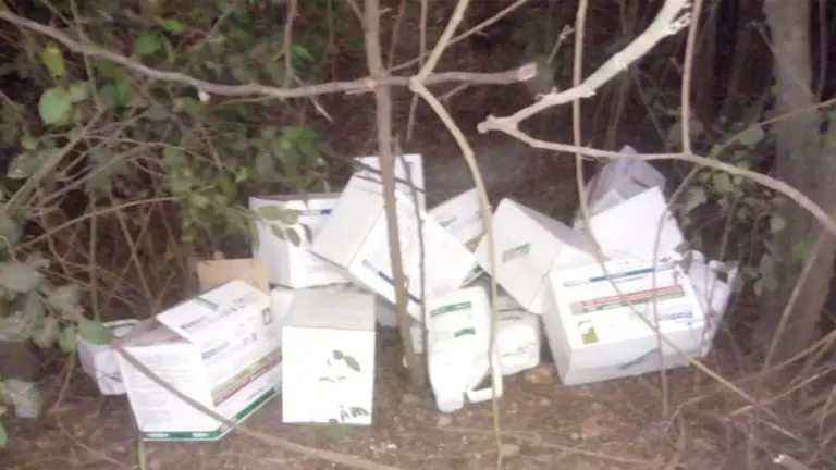 A las 18 de ayer salió el cabo Jairo Tolava junto al denunciante al lugar del hecho y de allí siguiendo el rastro de los supuestos ladrones, que se internaron en un monte cercano a la propiedad, y trascartón encontraron los bidones de los productos químicos robados escondidos entre las malezas.