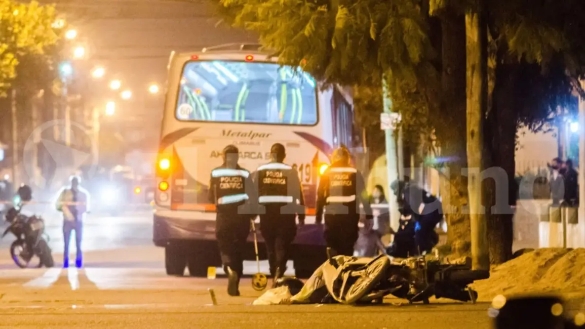 Noche trágica en el barrio Intersindical. Un chico de 16 años murió esta noche luego de que colisionara con su moto la parte trasera de un colectivo de Saeta.