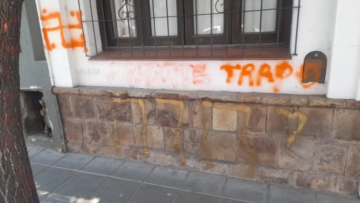 En esta oportunidad, se trató de unos grafitis en el frente de un domicilio particular, ubicado en calle Pueyrredón al 100, donde, fueron pintadas una cruz esvástica y un acrónimo en Hebreo, lo que generó que se lleven a cabo tareas de reparación, de acuerdo al protocolo de actuación previsto para estos casos.