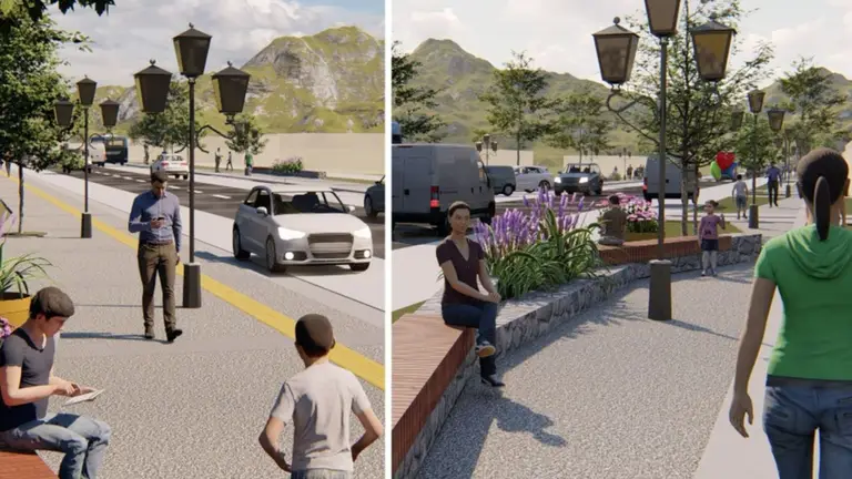 Las obras contarán con el siguiente equipamiento: solado podotáctil en sectores de cruces y recorrido; pavimentación de la banquina faltante, bancos y canteros; 2800 m2 de nuevas veredas; dársenas de estacionamientos; 1600 m2 de nuevas platabandas y bocacalles; Iluminación; parquización; semaforización; vados en esquinas; pintura vial; señalética horizontal y vertical; y equipamiento urbano (bancos, basureros, etc.).
