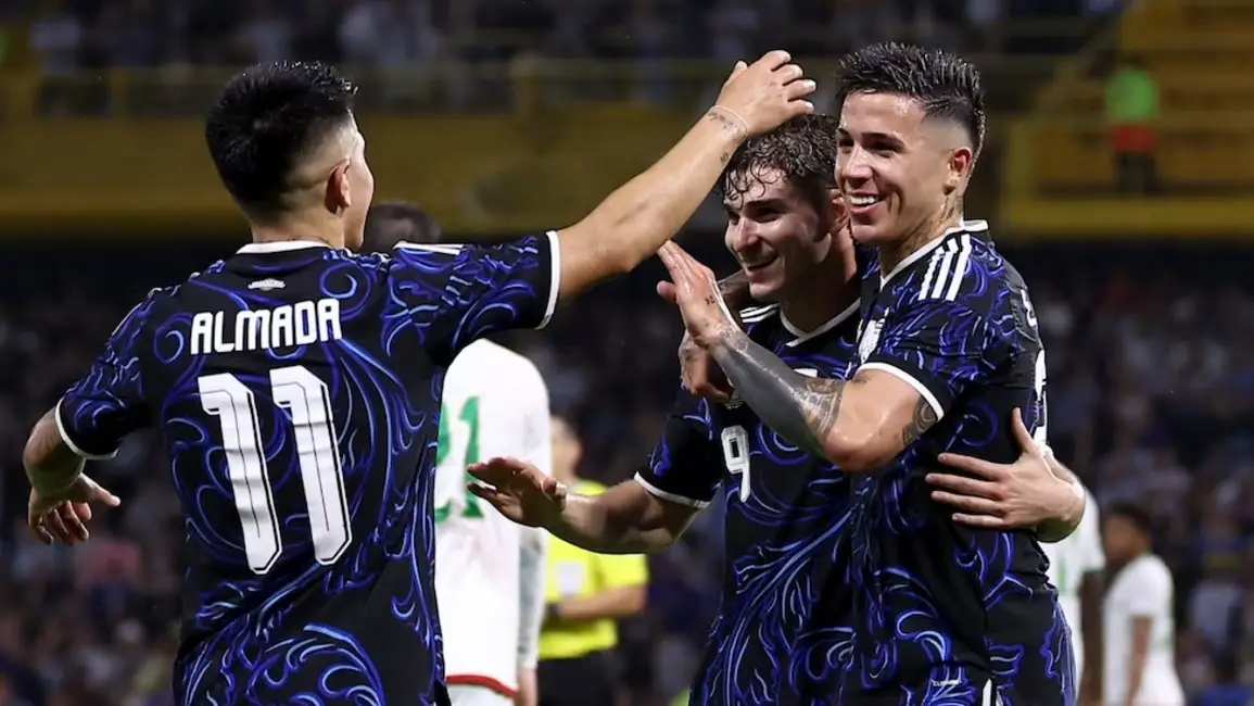 Argentina: Emiliano Martínez; Nahuel Molina, Cristian Romero, Marcos Senesi, Marcos Acuña; Enzo Fernández, Alexis Max Allister, Nico Paz, Nico González; Julián Álvarez y Thiago Almada . DT: Lionel Scaloni.