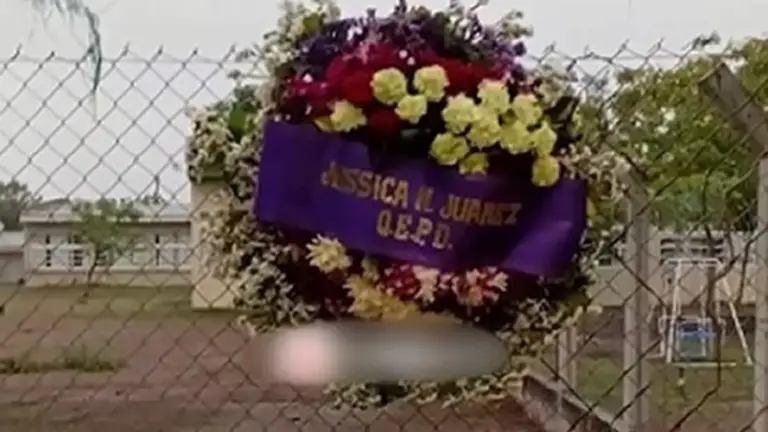 El hecho se conoció cuando la víctima, identificada como Jéssica N. Juárez, publicó en sus redes sociales imágenes del siniestro hallazgo. En la corona de flores blancas se podía leer la inscripción “Q.E.P.D.”, siglas que significan Que en paz descanse. La escena fue interpretada como un mensaje directo de intimidación.