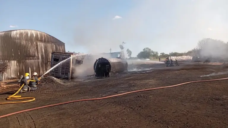 El siniestro se produjo en una propiedad rural perteneciente a una empresa ganadera, donde una casilla rodante ubicada a pocos metros del poblado quedó envuelta en llamas tras una fuerte explosión de una garrafa.