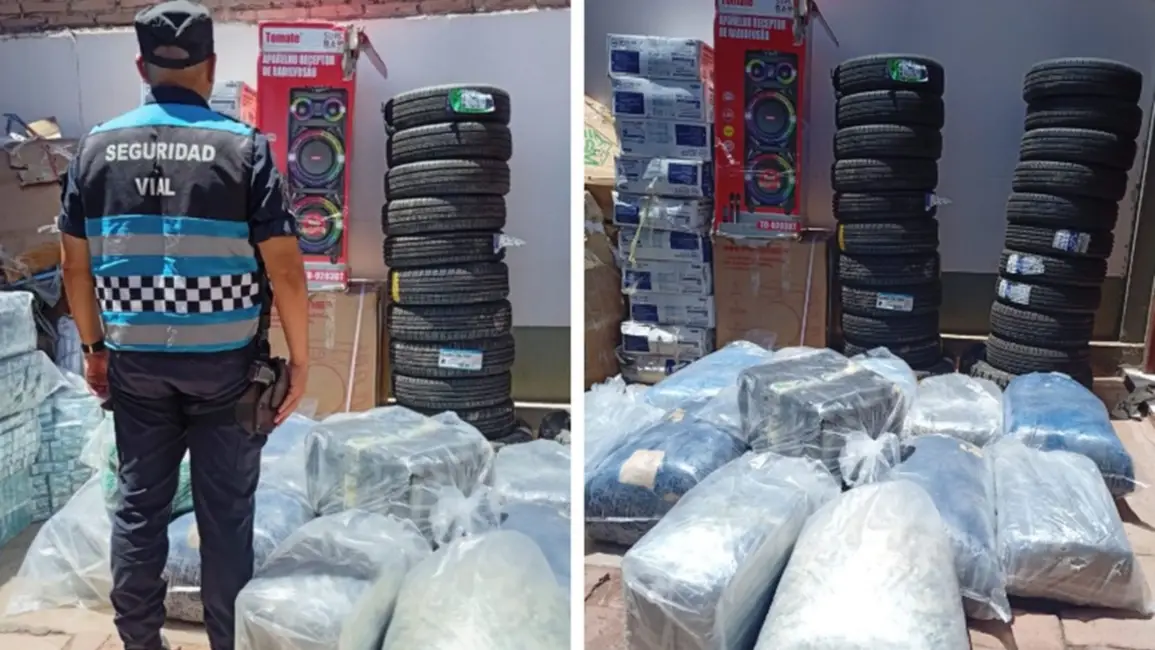 Al revisar la carga y solicitar la documentación correspondiente, los efectivos constataron que los ocupantes del rodado no podían acreditar el origen legal de la mercadería que transportaban. El relevamiento posterior dejó al descubierto un cargamento variado y voluminoso: 24 neumáticos, 7 bicicletas, 20 ventiladores, 260 cajas de cigarrillos, 311 kilogramos de hojas de coca, además de un lavarropas y otros elementos de uso doméstico.