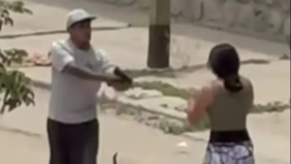 En ese momento, según lo que muestra el video, el agresor se acercó a la mujer, le sacó el arma que llevaba consigo y la utilizó para amenazar tanto a ella como a su acompañante, generando una situación de extrema tensión en la vía pública.