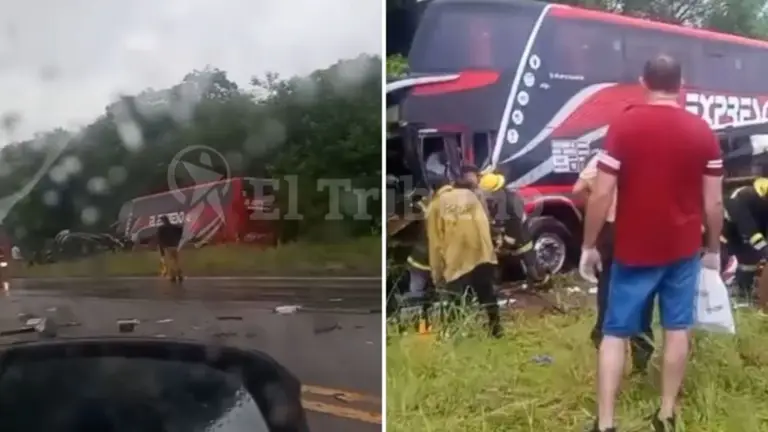 Varias dotaciones de Bomberos y muchas ambulancias junto a personal policial trabajan en el lugar, donde los restos de los vehículos siniestrados cubren la totalidad de la calzada. Los daños en las camionetas, una de ellas volcada, y en el ómnibus son muy graves.