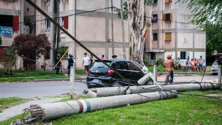 La siesta del barrio Bancario, en la zona sur de la ciudad, se quebró de golpe. Esta tarde eran alrededor de las 16.30 cuando un estruendo seco, inesperado, sacudió la tranquilidad de la calle Nuestra Señora del Perpetuo Socorro. Un árbol de gran porte cedió de manera abrupta y cayó con violencia sobre la calzada. En su desplome arrastró postes de luz, cables eléctricos y terminó aplastando al menos dos vehículos que estaban estacionados frente a viviendas de la zona.