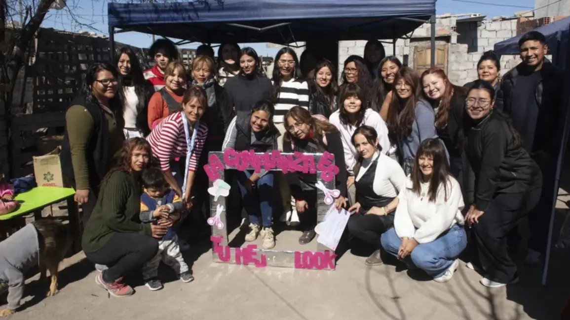 Durante una de las jornadas, niñas, niños y adolescentes accedieron a cortes de pelo gratuitos, mientras que sus madres participaron en tratamientos capilares en la peluquería comunitaria, coordinada por mujeres egresadas del curso dictado en la Casona de la Paz.