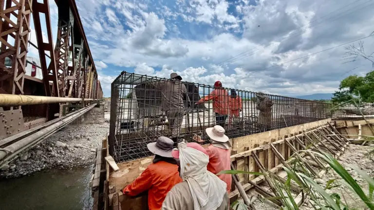 El avance no se detiene allí. En los próximos días está previsto el montaje de las vigas, sobre las que se apoyará la superestructura del primero de los dos nuevos puentes proyectados. De manera paralela, la planificación de obra contempla que la semana próxima se trabaje en las bases de apoyo del actual puente metálico, una pieza histórica que será desmontada y reubicada aguas abajo para un nuevo uso: funcionará como ciclovía y paso peatonal, integrando movilidad segura y recreación al entorno.