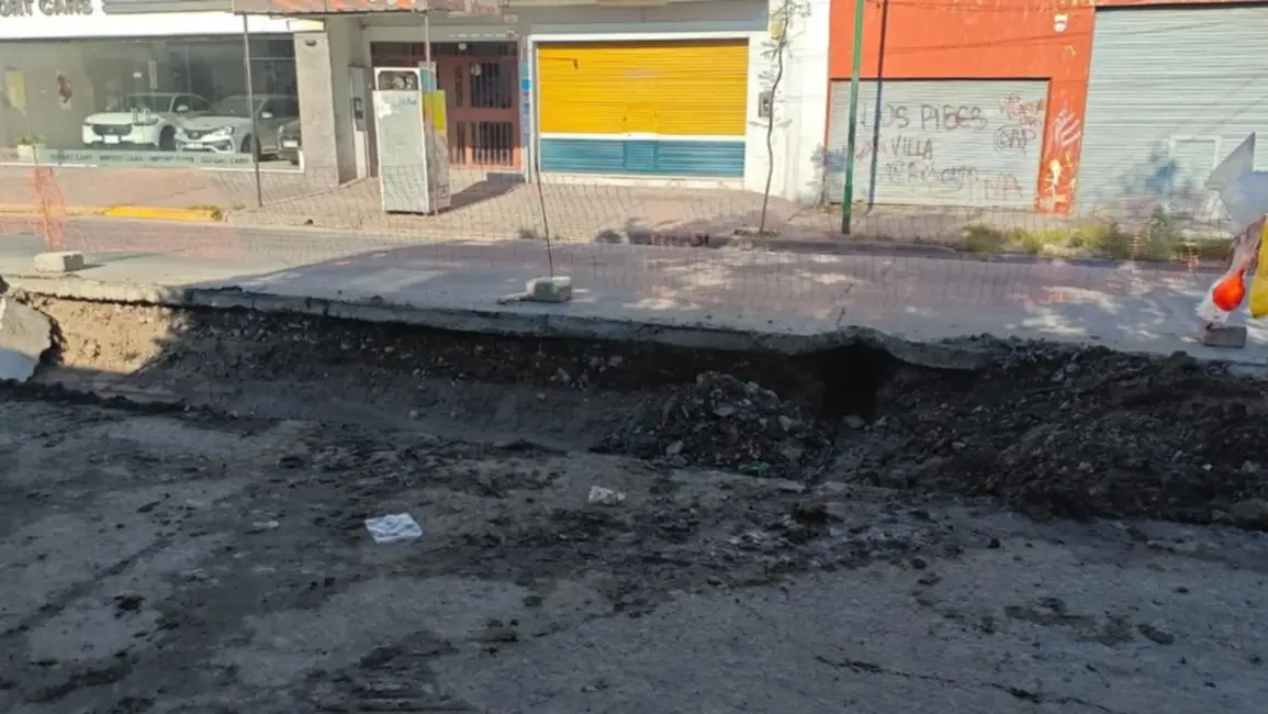 Durante esa intervención se constató que el problema se originó por una importante pérdida en un caño perteneciente a Aguas del Norte, que provocó el socavamiento del terreno y el vaciamiento de la losa de hormigón, generando un riesgo estructural considerable tanto para automovilistas como para peatones.