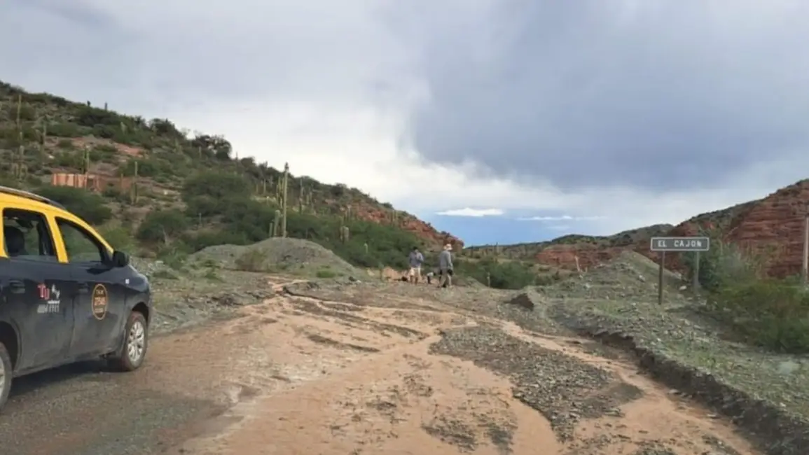 En cuanto a esta Ruta Provincial, El tránsito está interrumpido por derrumbes y por la crecida de la quebrada Sunchal, a la altura del kilómetro 54, en medio de un fuerte temporal de lluvias.