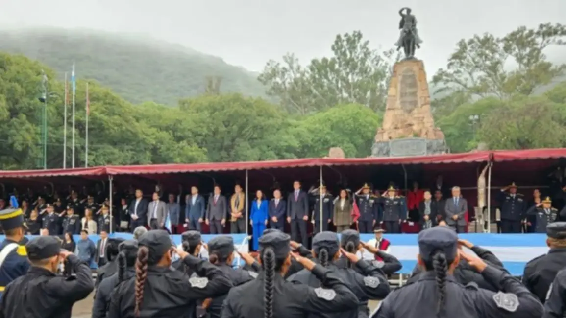 El momento principal de la jornada se vivió en el Monumento a Güemes, donde se desarrolló el acto oficial y el desfile policial.